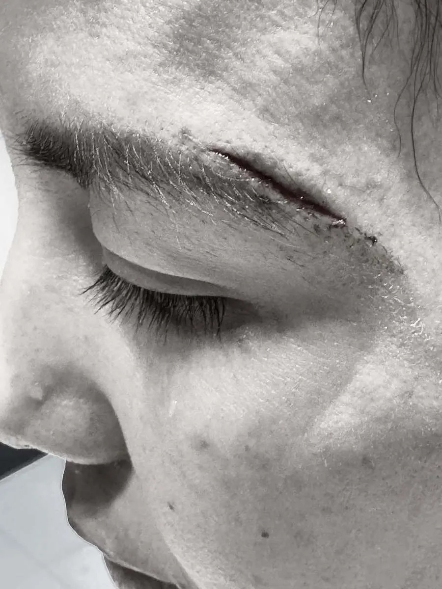 Nah ini luka Tya sebelum dijahit. Memang terlihat dalam nih lukanya. Tya sengaja membuatnya jadi hitam putih fotonya, untuk menghindari buat yang tak terbiasa melihat luka dan darah.