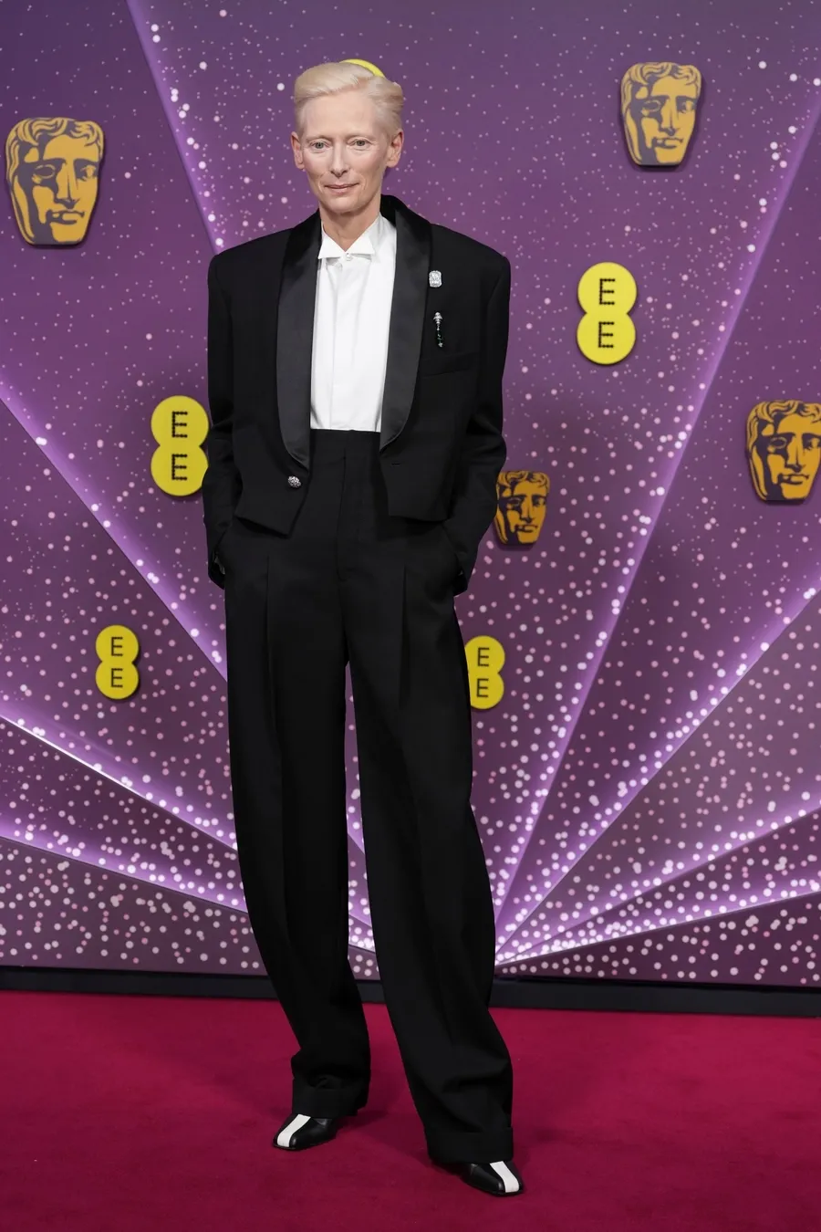 Bukan gaun, Tilda Swinton tampil sophisticated dalam balutan tuksedo dari Chanel. Potongan busananya berkarakter kuat. Pesonanya terasa effortless dan tetap ikonik di tengah gaya glamor lainnya.