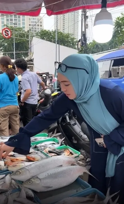 Ikan segar jadi salah satu bahan makanan yang dibeli Angelina Sondakh di sore itu. KLovers suka makan ikan?
