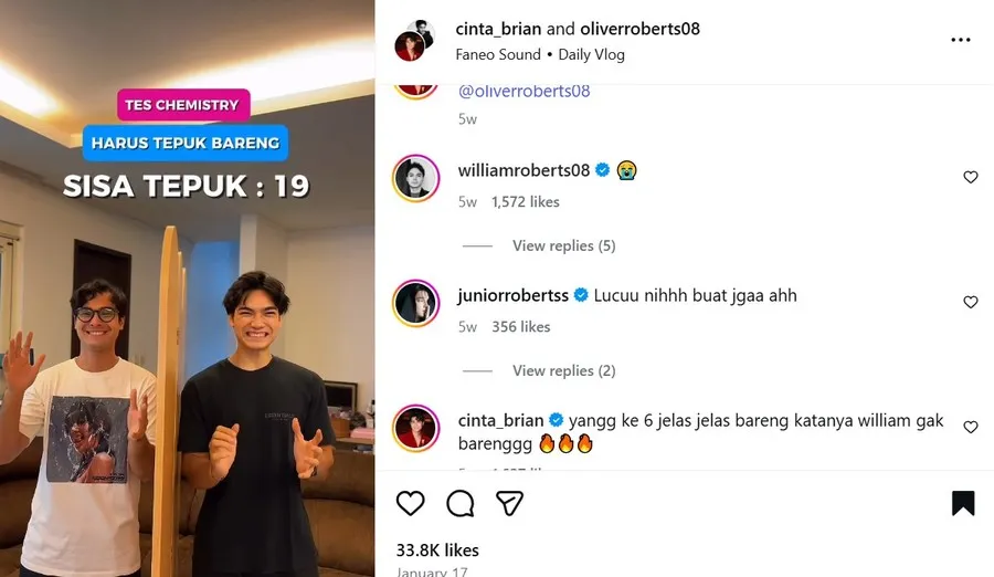 Mereka sangat kompak dan seru banget. Junior dan William pun antusias beri komentar di konten tersebut.