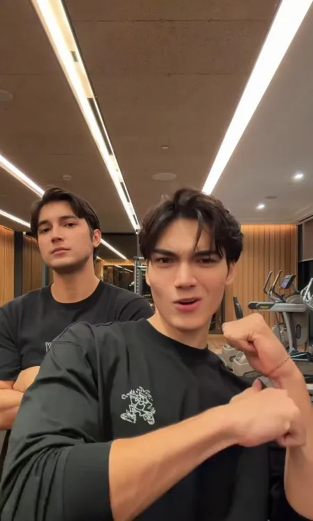 Oliver dan Junior Roberts pun olahraga bareng. Berikut salah satu momen seru keduanya bikin konten berdua di tempat gym.