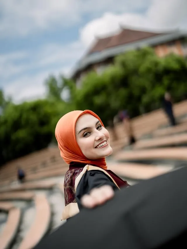 Di balik toga kelulusannya, Zee Zee Shahab tampil memukau mengenakan kebaya Betawi. Penampilan Zee Zee yang sangat menawan dengan kebaya warna jingga ini pun berhasil mencuri perhatian.