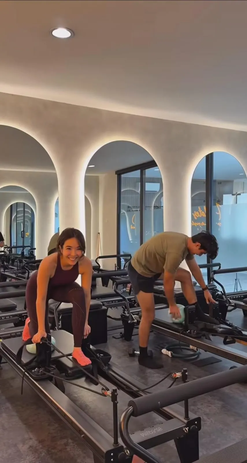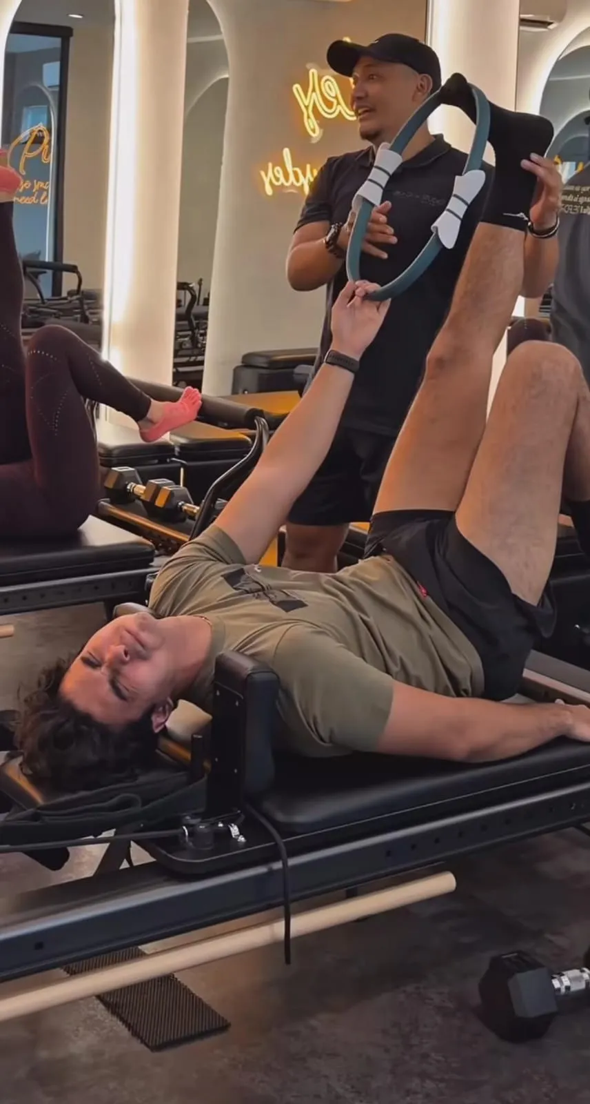 Cinta Brian tidak mampu menyembunyikan ekspresi lelahnya yang luar biasa setelah sesi latihan pilates berakhir. Sebaliknya, Gisella Anastasia justru tetap terlihat sangat bugar dan masih penuh semangat.