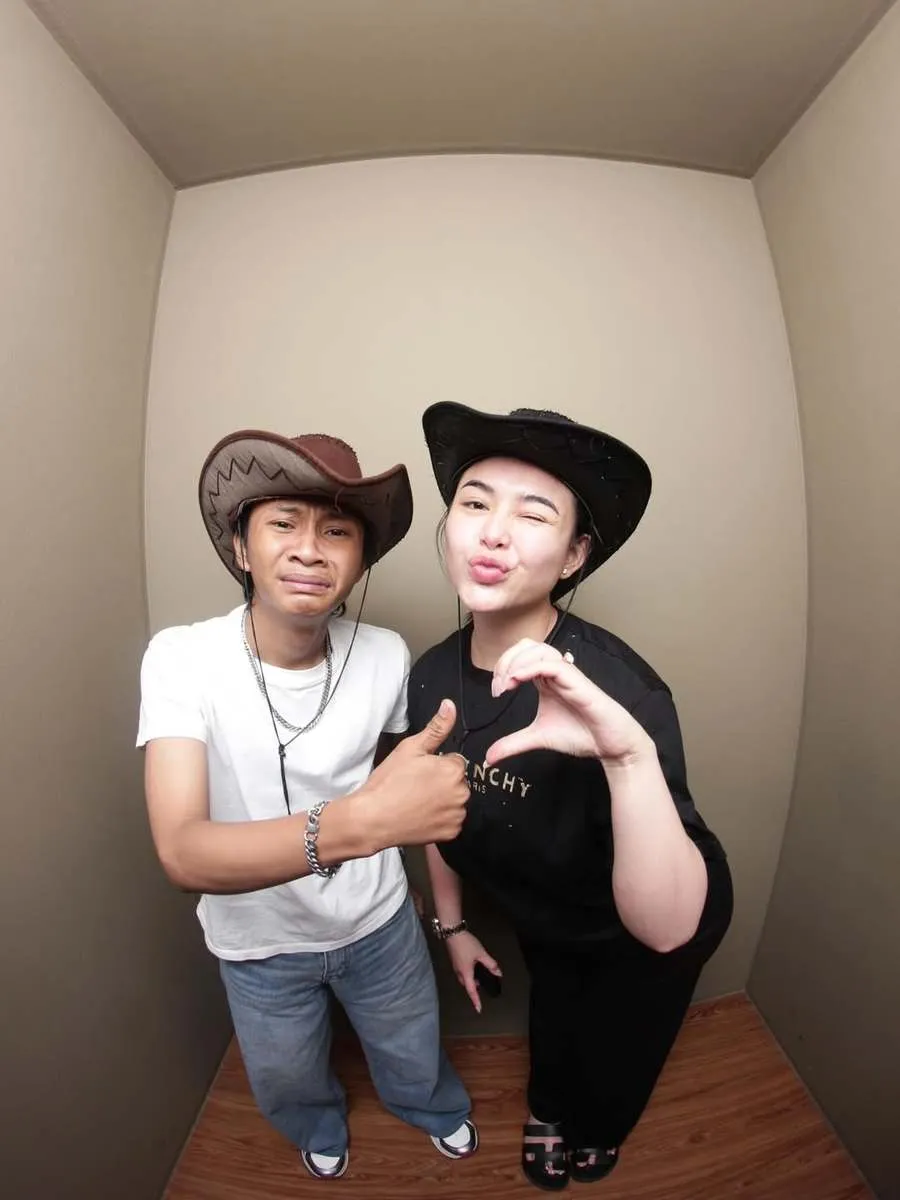 Dalam salah satu foto, keduanya kompak berpose memakai topi koboi. Amanda Manopo membentuk simbol hati dengan tangan, sementara Fajar memberi gestur santai.