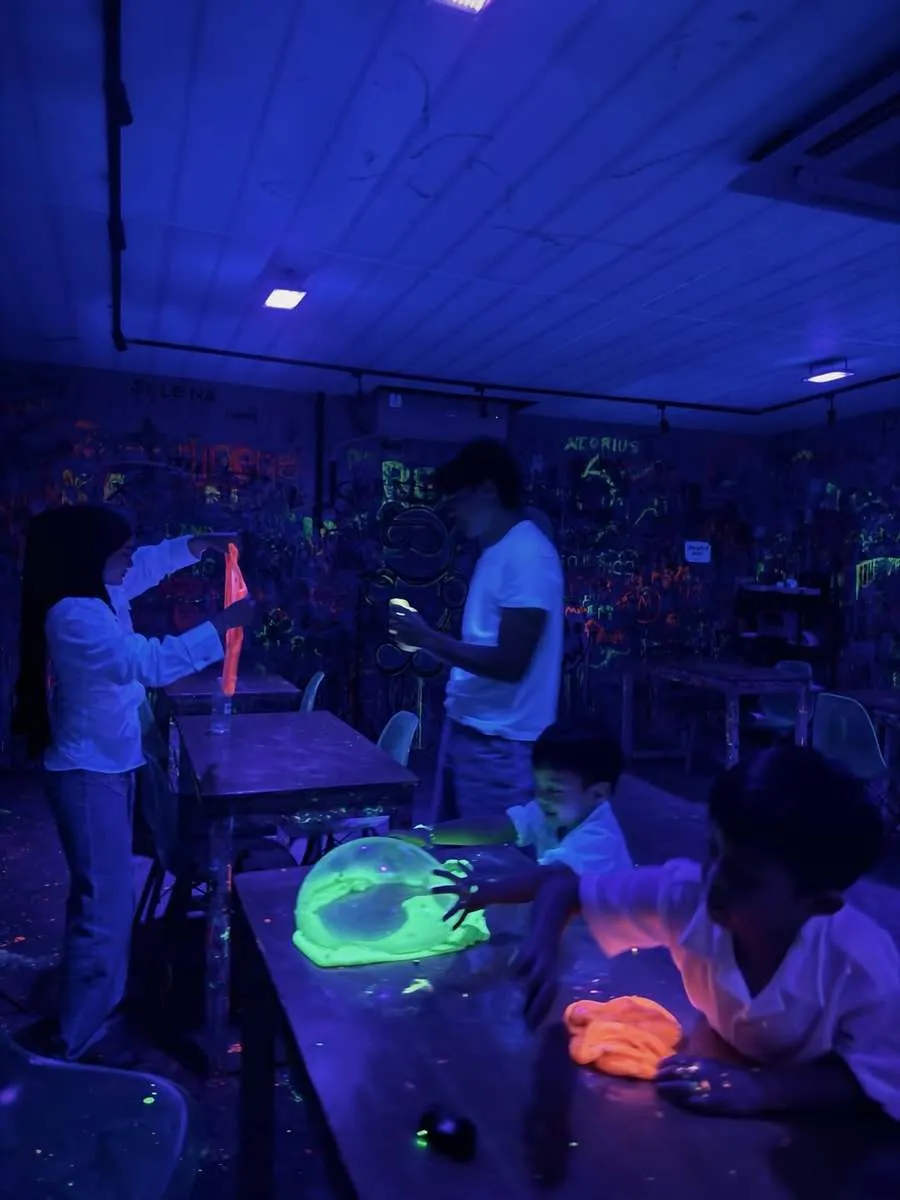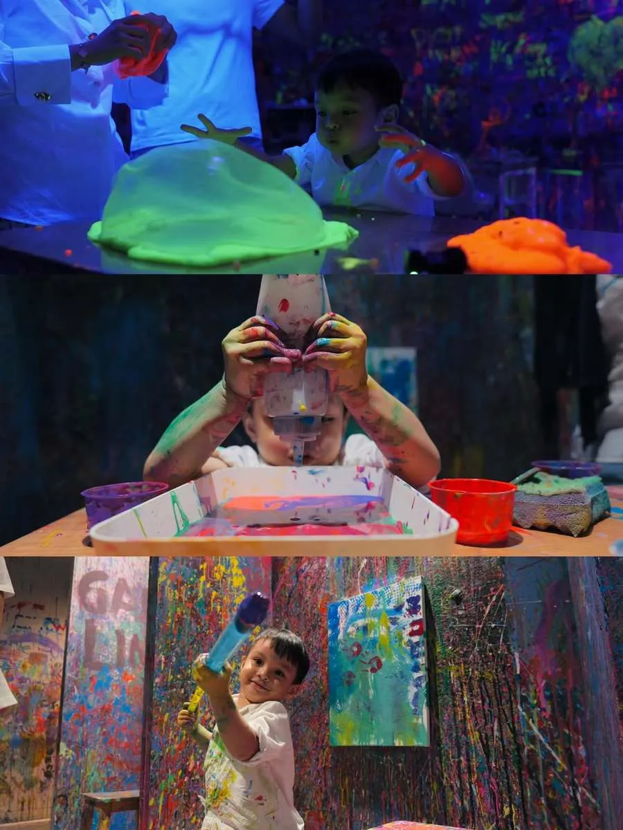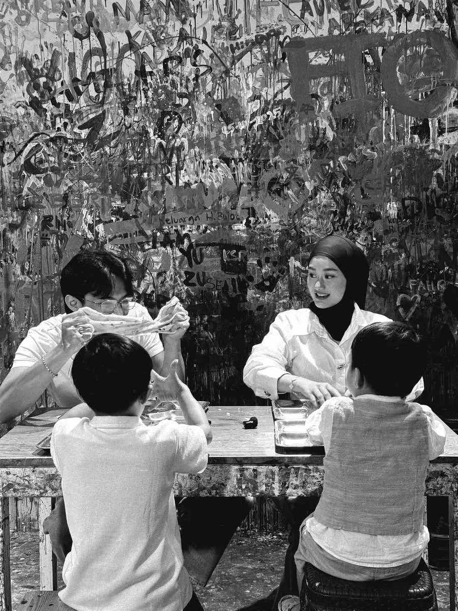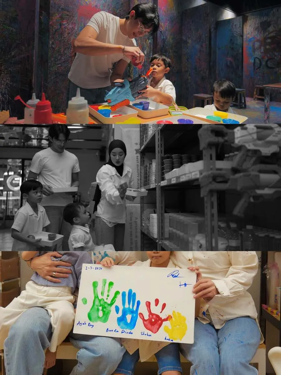 Ya, itu menjadi momen quality time antara Dinda dan Rey dengan anak-anaknya. Mereka asyik membuat prakarya dan berjibaku dengan cat.