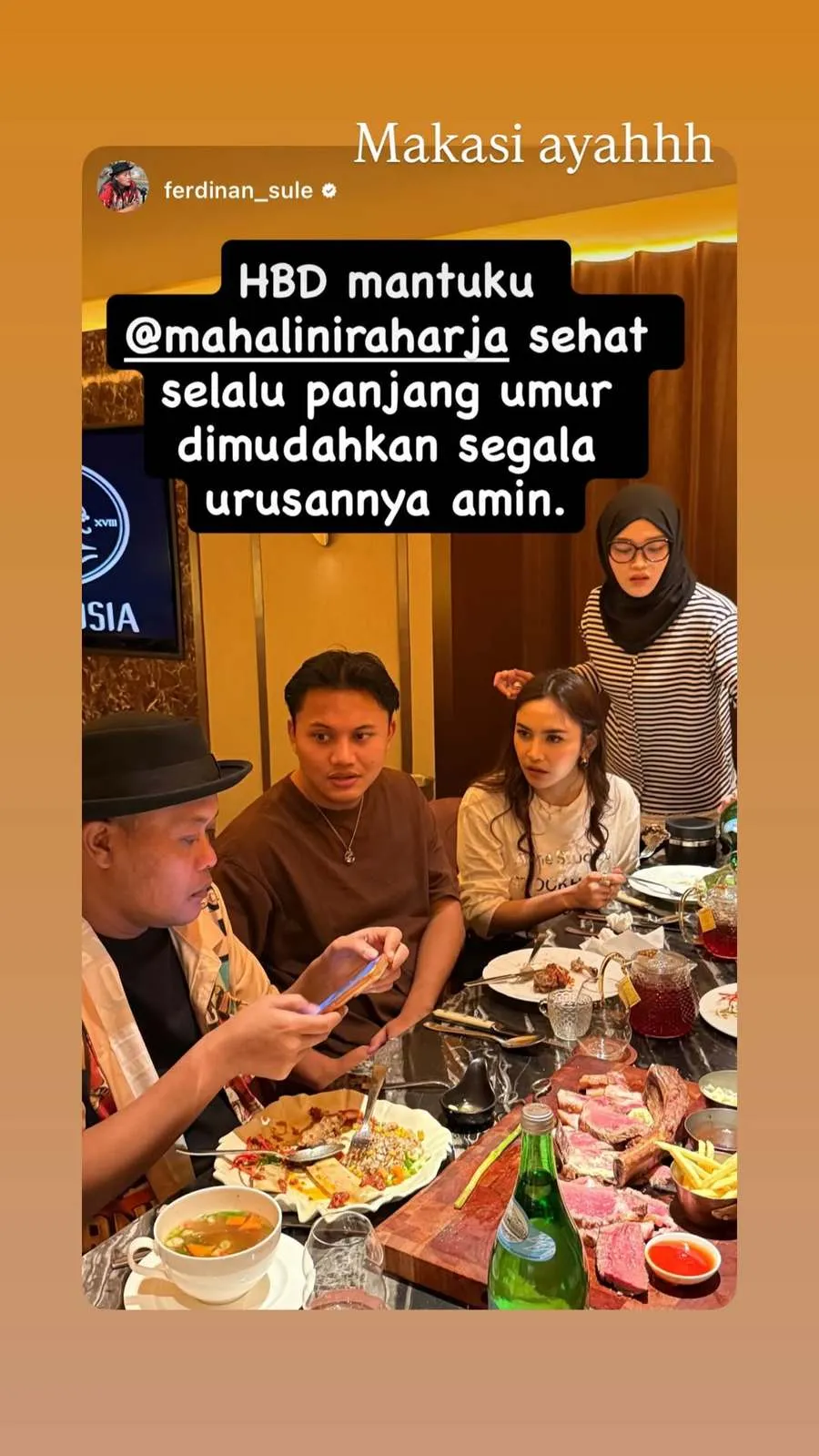 Ucapan tersebut langsung direspons oleh Mahalini. Penyanyi bersuara merdu itu terlihat merepost Instagram Story sang mertua sambil mengucapkan terima kasih. "Makasi ayahh."