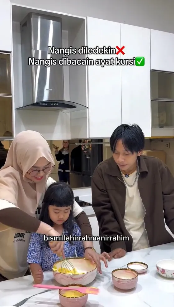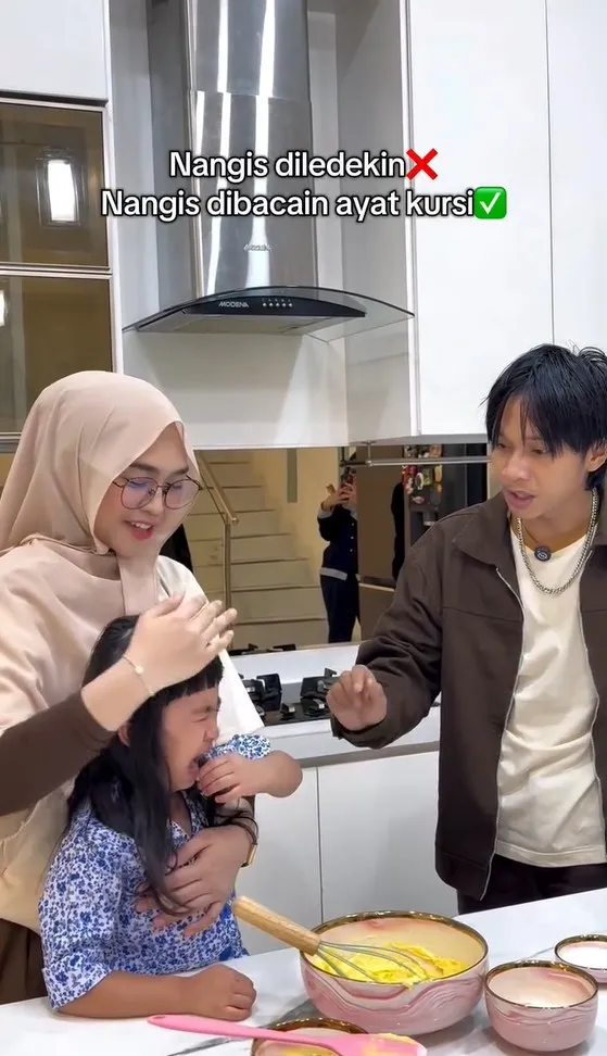 Alih-alih hanya memasak dengan santai, suasana dapur justru berubah menjadi heboh ketika Moana, tiba-tiba menangis keras. Kejadian itu terjadi setelah Fajar membacakan Ayat Kursi di tengah aktivitas mereka. Begini potretnya.