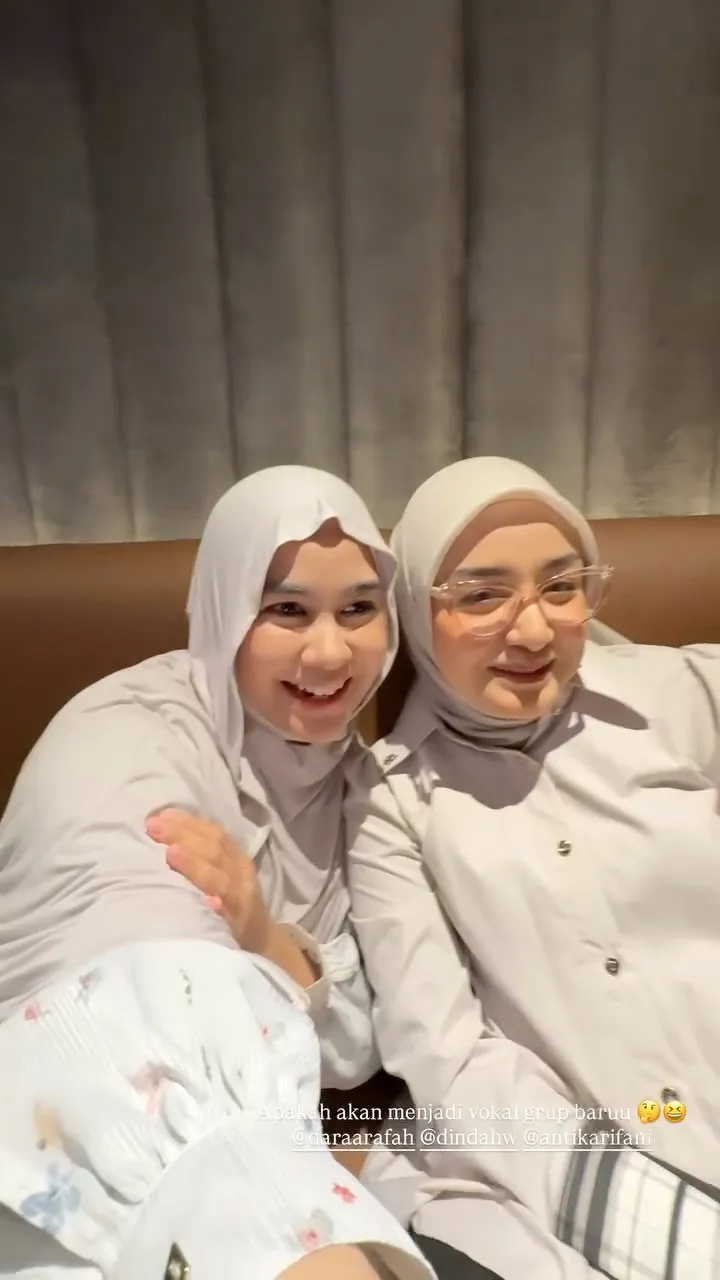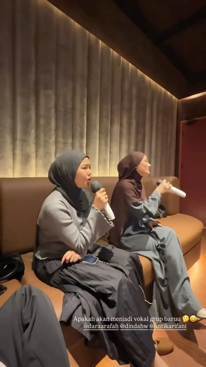 Namun, salah satu momen paling seru terjadi saat Dinda Hauw dan Dara Arafah bernyanyi bersama. Keduanya memegang menikmati lagu sambil duduk santai.