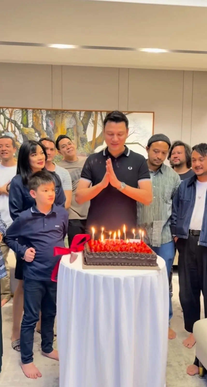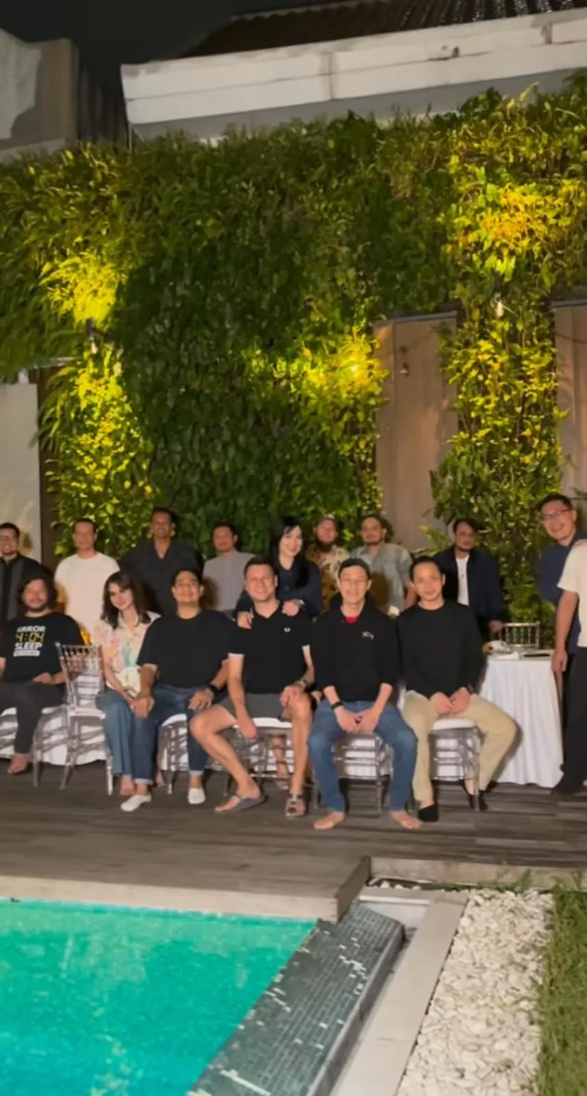 Momen ulang tahun Christian Sugiono terasa semakin meriah berkat kehadiran para sahabat setianya. Semuanya tampil kompak mengenakan busana bernuansa gelap yang menambah kesan hangat dan akrab.