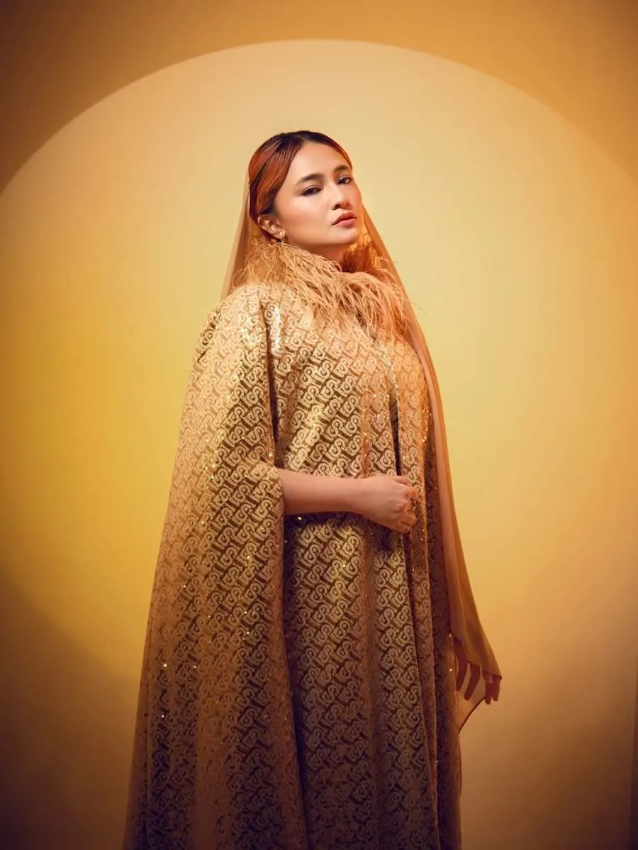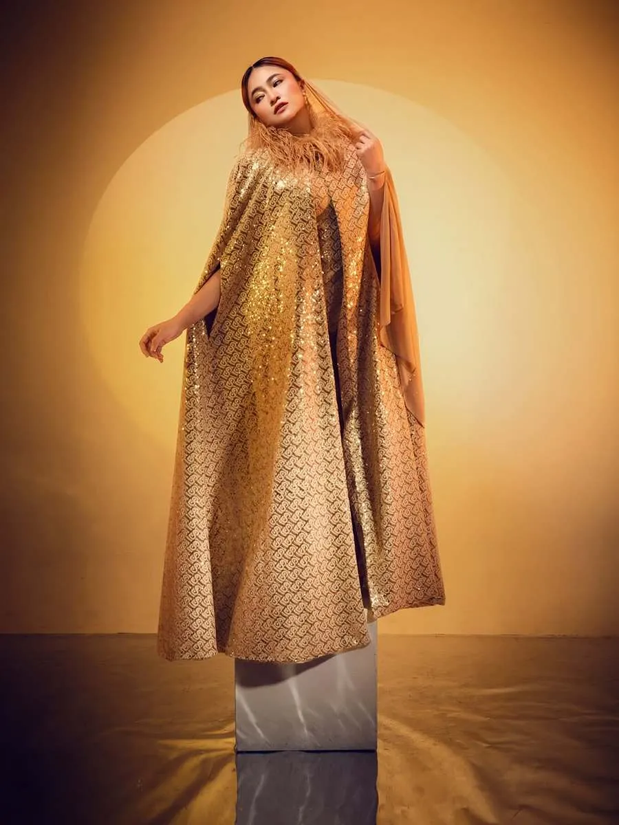 Ia tak sendiri, ada Sienna yang menemani. Keduanya kompak tampil cantik dalam balutan busana bernuansa keemasan.