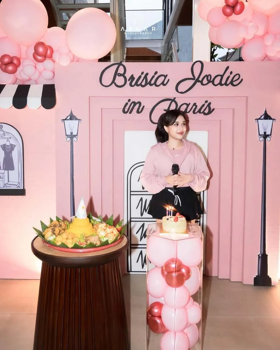Brisia Jodie berusia 30 tahun, tapi wajahnya masih tampak awet muda. Ia merayakan ultahnya di lapangan padel dengan dekorasi warna pink.