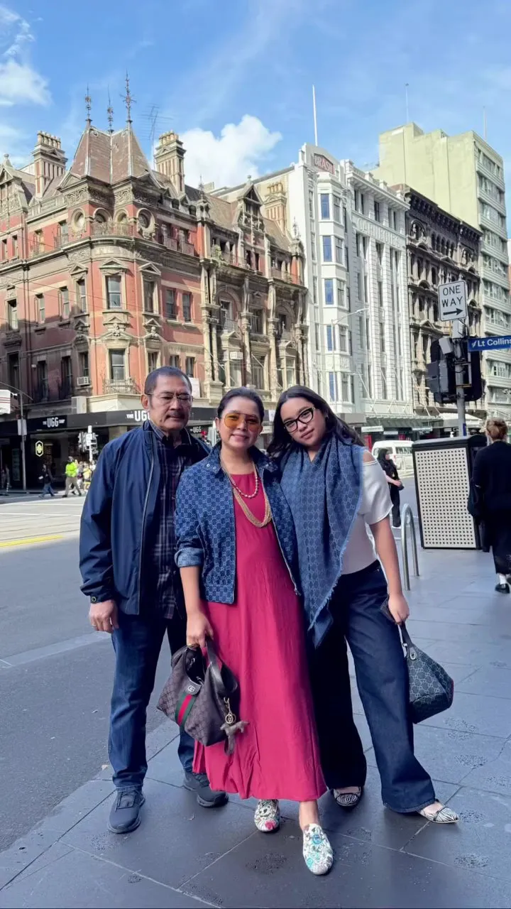 Keluarga ini juga mengabadikan pose kompak saat berjalan santai di Melbourne. Potret kebersamaan mereka terlihat hangat dan penuh kebahagiaan.