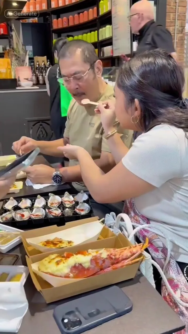 Setelah puas berkeliling pasar, keluarga selebriti ini menikmati kulineran di sana. Seafood menjadi salah satu menu yang paling dinikmati.