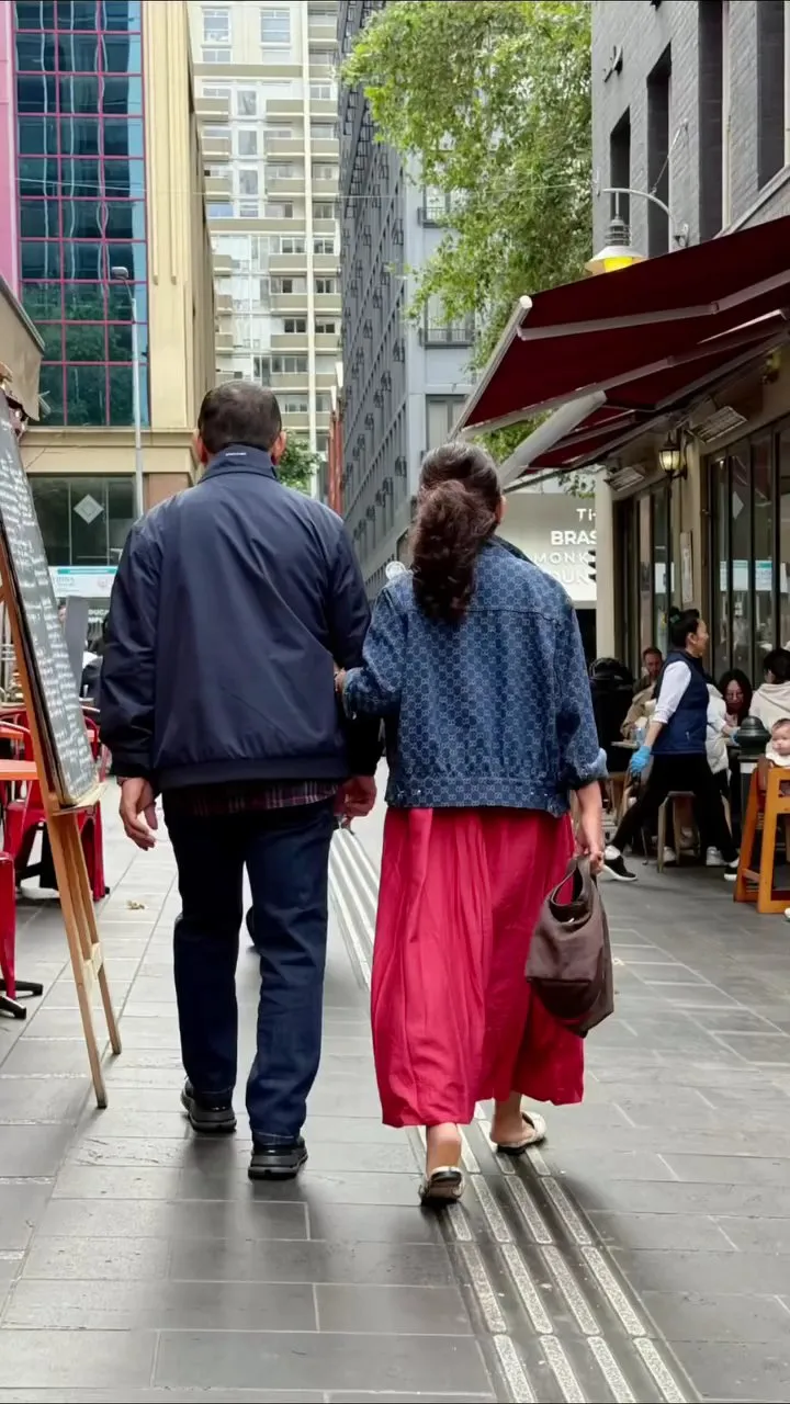 Mayangsari dan Bambang Trihatmodjo menikmati suasana kota sekaligus menciptakan kenangan berkesan selama berada di Melbourne. Penampilan mereka juga kompak dengan busana berwarna senada.