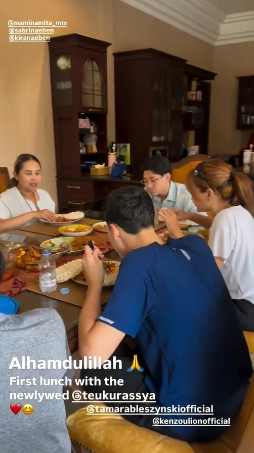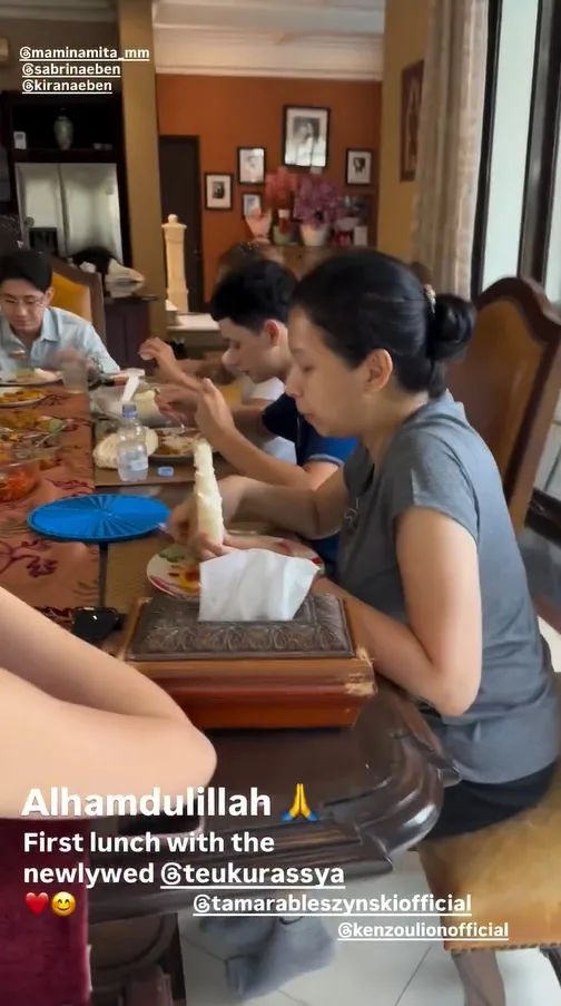 Pada momen makan siang kali ini, Teuku Rassya hadir sendiri. Ia tidak ditemani oleh sang istri, Cleantha Islan. Rassya terlihat menyantap makanannya dengan santai dan lahap.