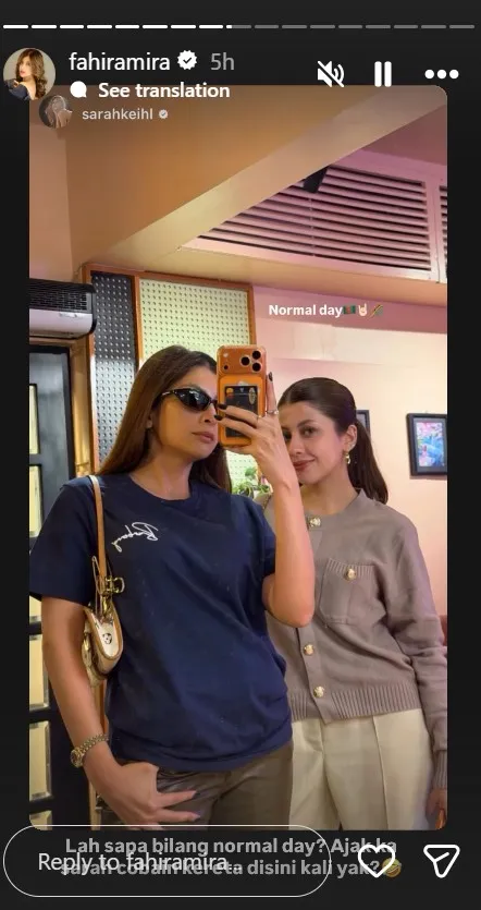 Sarah tak sendirian, ia pergi bersama adiknya, Fahira Mira. Mereka menikmati trip berdua ini.