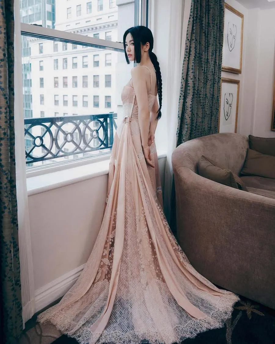 Penampilannya makin standout dengan gaya rambut "hime cut", poni tegas, dan hair extension yang dikepang, memberi sentuhan unik nan elegan saat momen debutnya di Met Gala.